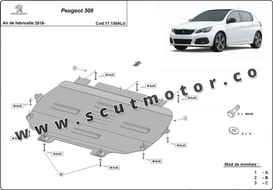 Scut motor din aluminiu Peugeot 308